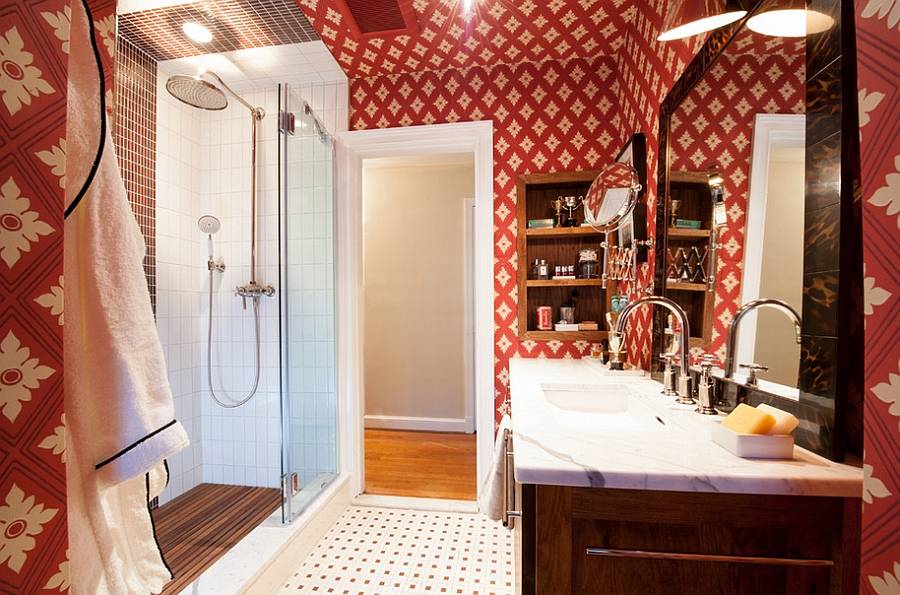 Инновационное использование красных обоев в небольшом помещении (дизайн Christopher Patrick Interiors)