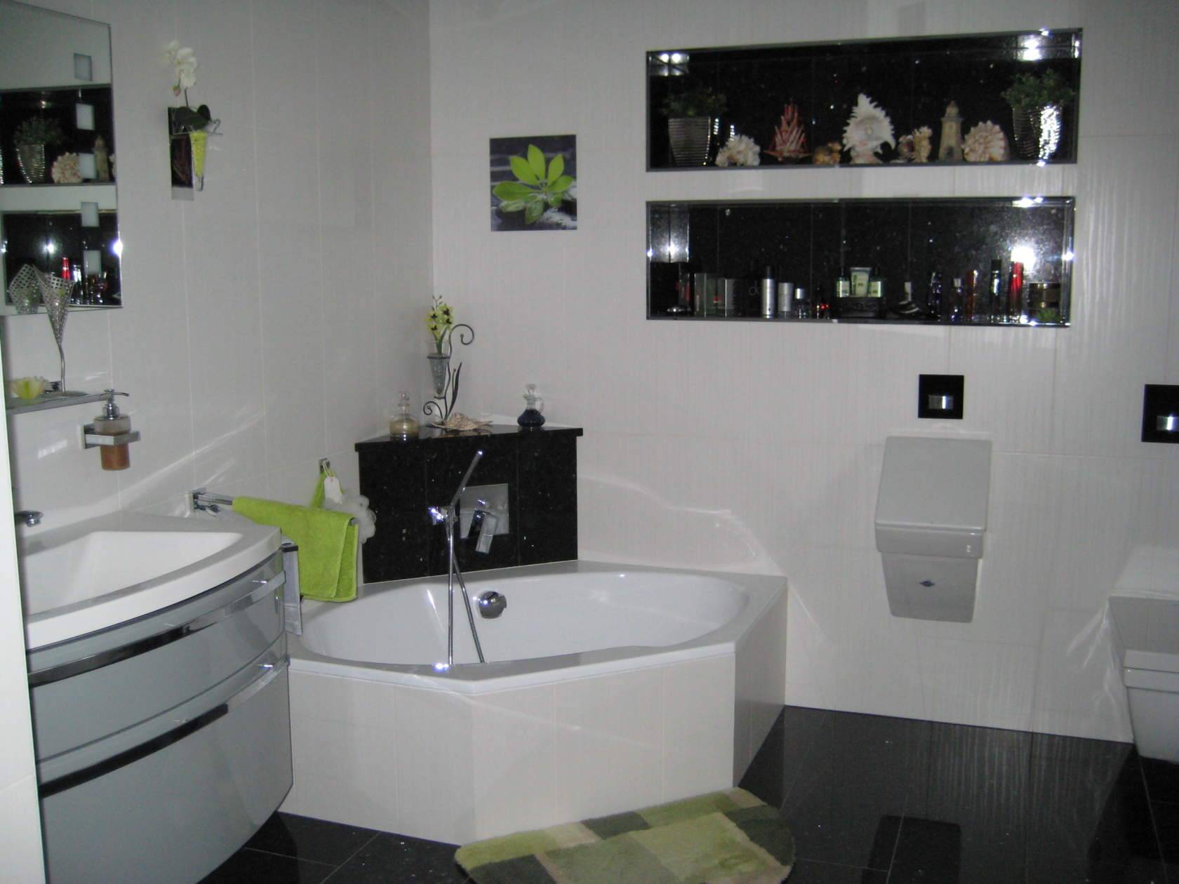 Черная ванна – популярное решение для стилей хай-тек, лофт или фьюжн