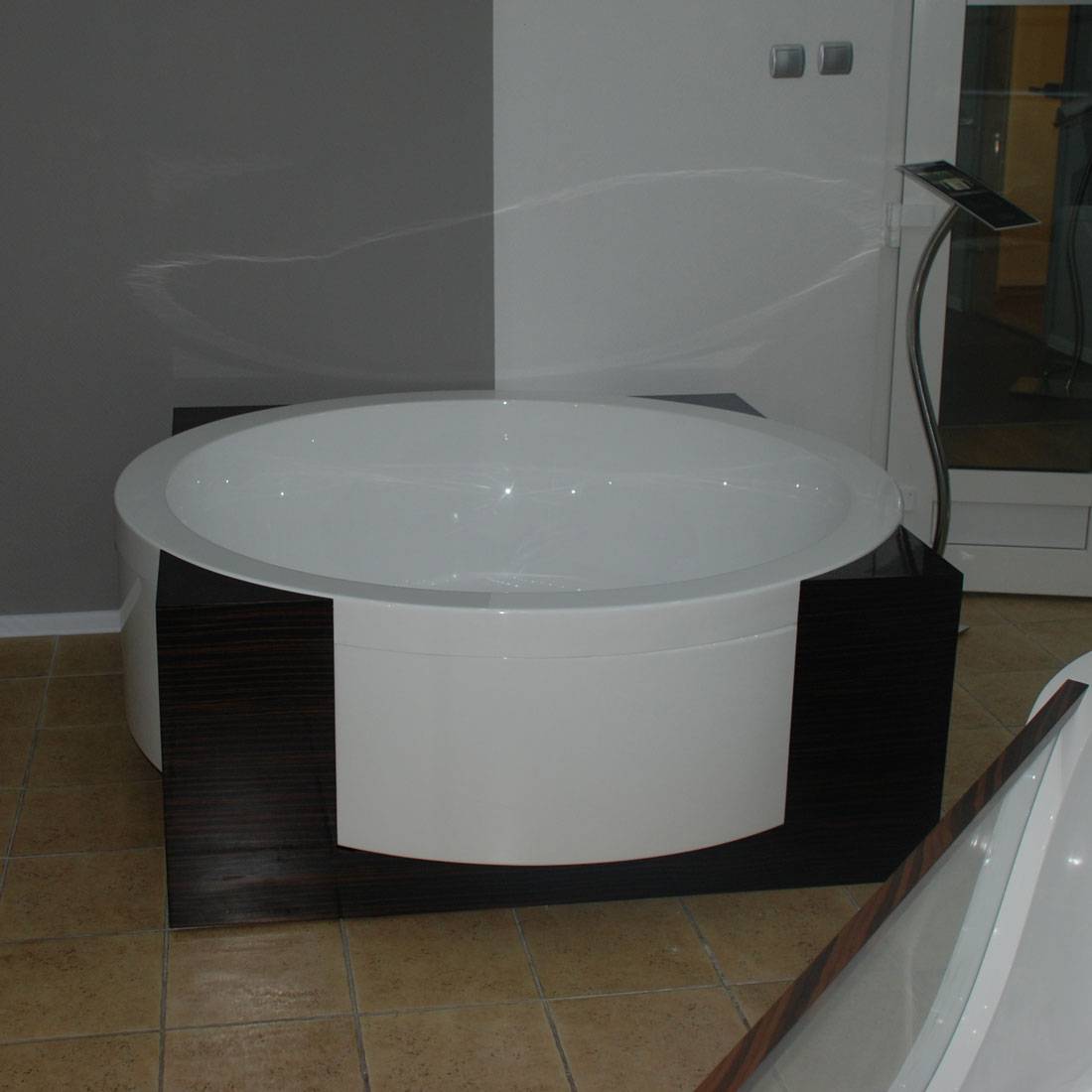 Обычно устанавливают в больших по площади помещениях. Ванны ставят возле стены или монтируют на пьедестал. При этом ее плавные изгибы сочетаются с любым интерьером, придают оригинальности и отличаются удобством эксплуатации. Овальная или круглая ванна не подойдет для помещения меньше 10 кв.м., так как займет большую часть комнаты. К тому же при такой форме изделие тяжело мыть и содержать в чистоте.