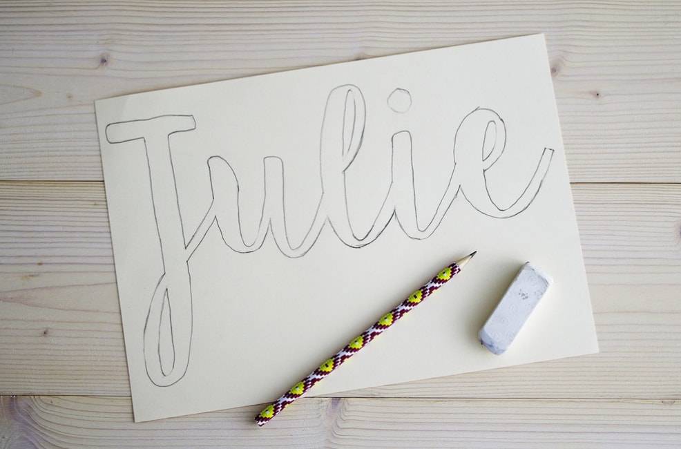 На листе формата А4 рисуем имя ребенка. При желании можно его просто распечатать.