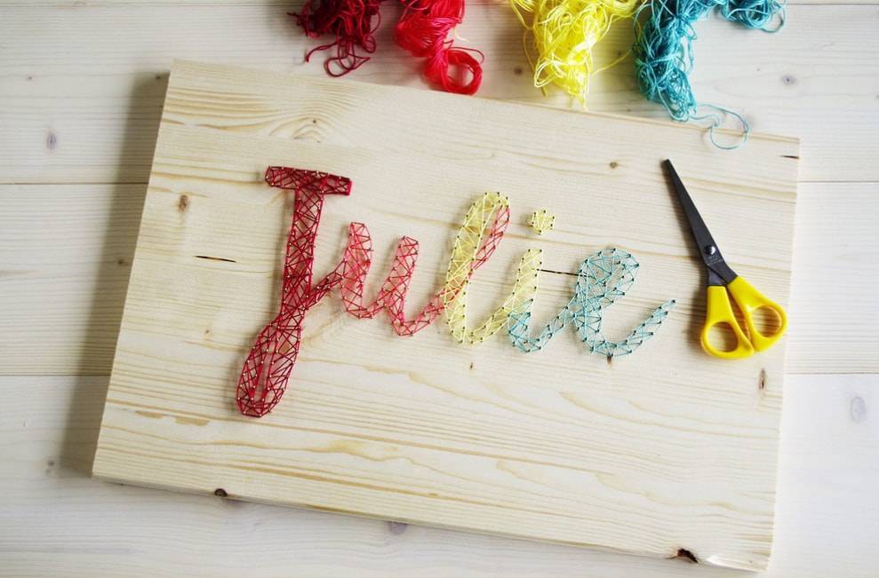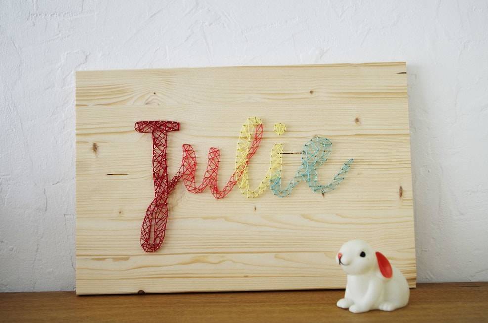 Прекрасным украшением для детской комнаты может быть стильное панно с именем ребенка.