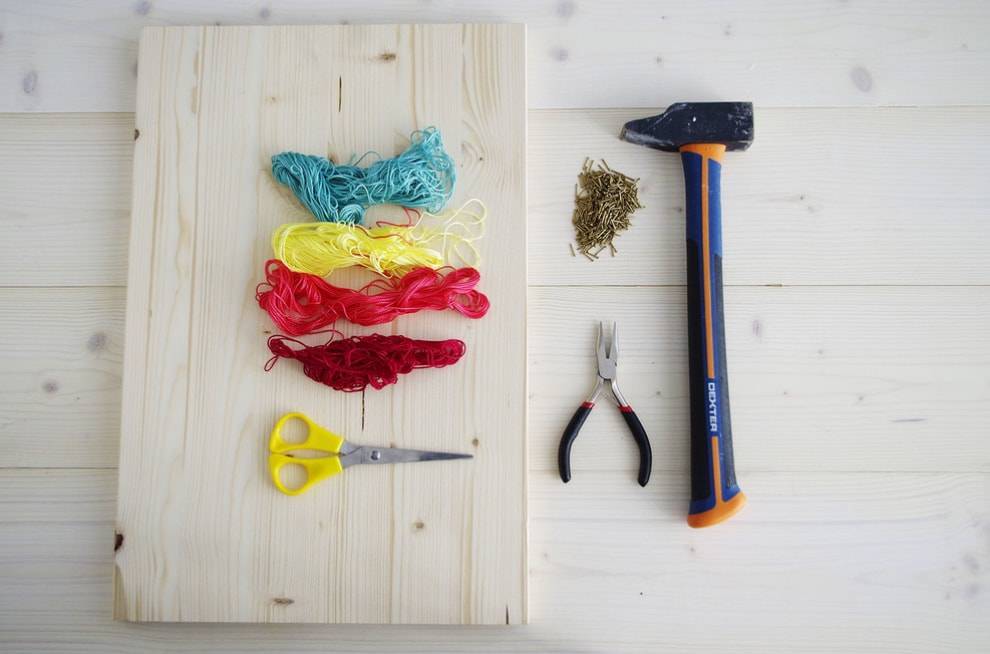 Когда все гвозди будут на доске, убираем лист бумаги.