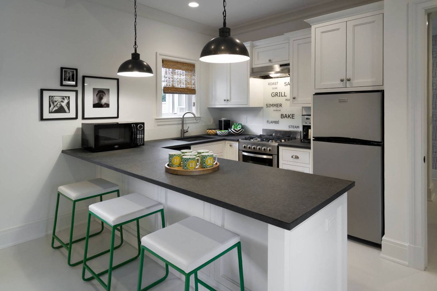 Для небольшой кухни лучше всего выбрать прямые или угловые варианты размещения мебели. Это поможет сохранить нужное пространство и зрительно расширит размер помещения.
