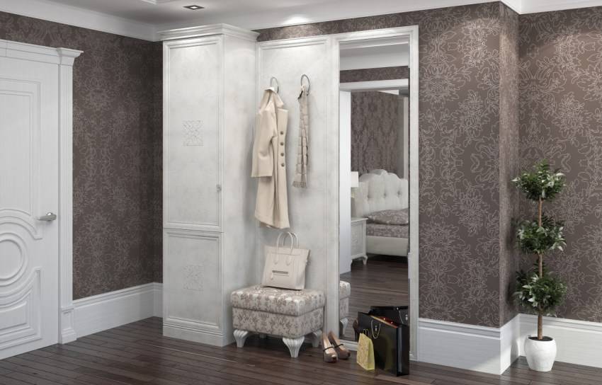 Сначала необходимо найти место для размещения вешалки. Хорошенько присмотритесь к помещению, найдите возможность поставит шкаф или просто вешалку, а под ней — обувницу с сиденьем.