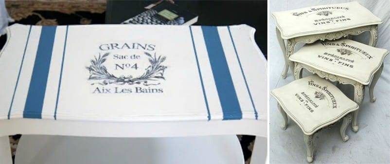 Если вы не хотите останавливаться на достигнутом или ваш стол не имеет серьезных повреждений, а просто нуждается в небольшом обновлении, то вы можете украсить стол рисунками: расписать его акриловыми красками вручную, использовать трафареты и штампы, либо обновить стол с помощью декупажа. Пожалуй, именно эту популярную сегодня технику декора мы рассмотрим подробнее, ведь декупаж позволит не только бюджетно и быстро преобразить стол или, например, стилизовать его под Шебби шик (как на фото ниже), но и скрыть некоторые дефекты обветшалой поверхности.