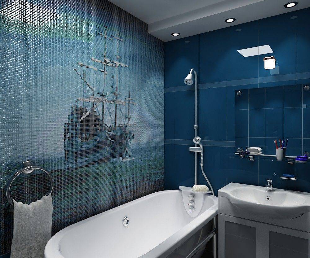 Красивое панно в морской тематике из мозаики — это хороший вариант для ванной
