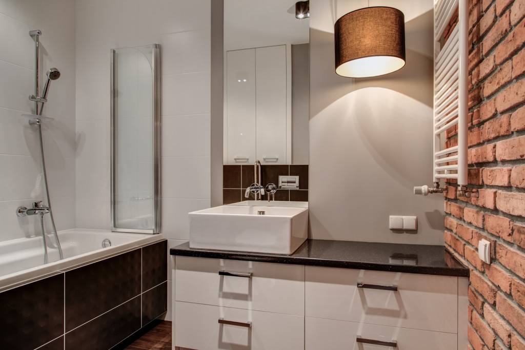 Лучшее сочетание в такой ситуации — зеркальная плитка и светодиодные лампы. При этом не рекомендуется использовать крупные размеры. Дополнительно можно разделить ванную на зоны плитками разных оттенков или оформив одну часть комнаты в современном стиле, а другую — в направлении лофт.