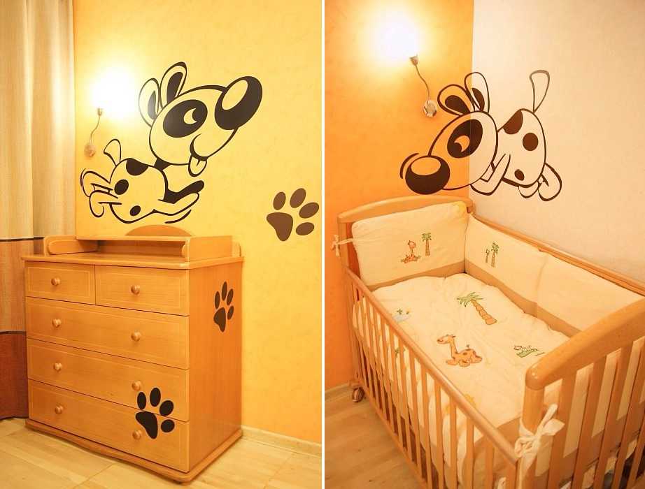 В детской комнате, конечно же, лучше всего использовать яркие рисунки. Но и монохром иногда смотрится очень здорово — например, черно-белые изображения Микки Мауса или игривых собачек. Подбирать наклейки для детской лучше всего в соответствии с возрастом: чем младше ребенок, тем ярче и игривее должны быть сюжеты. Стикеры для детей постарше могут быть строже. И, конечно, учитывайте пол ребенка: цветочки — девочкам, машинки — мальчикам.