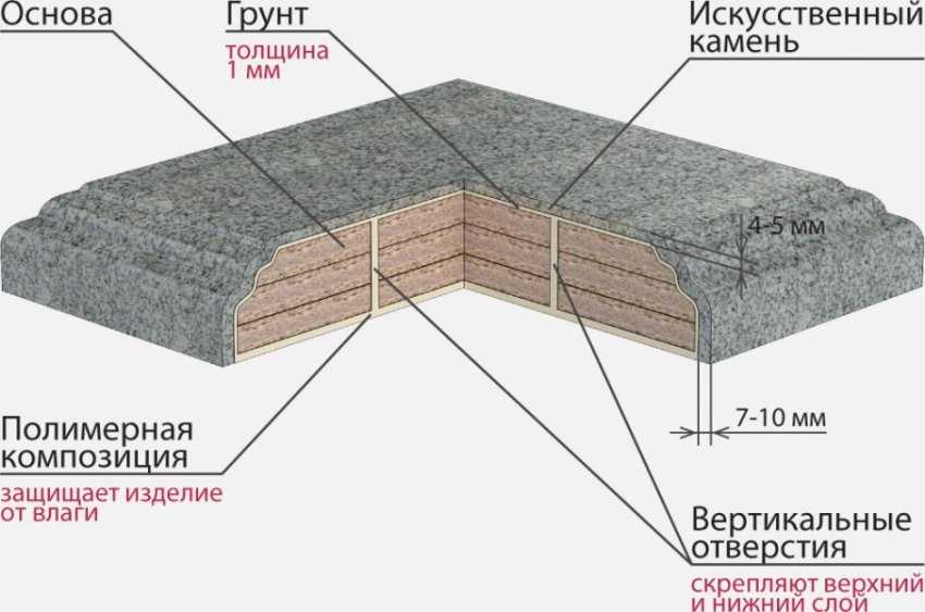 - Второй слой искусственного камня содержит расчетное количество наполнителя и красителя;