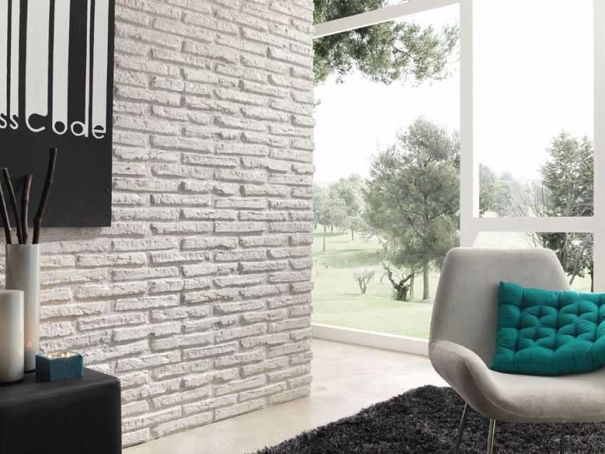 Не столь прочен, как бетонный. К тому же он не влагостоек. Зато обладает небольшим удельным весом, что позволяет крепить камень на гипсокартон. Применяется внутри отапливаемых помещений с не высокой влажностью, т. е. в ванных, банях и на кухнях монтировать его не следует.