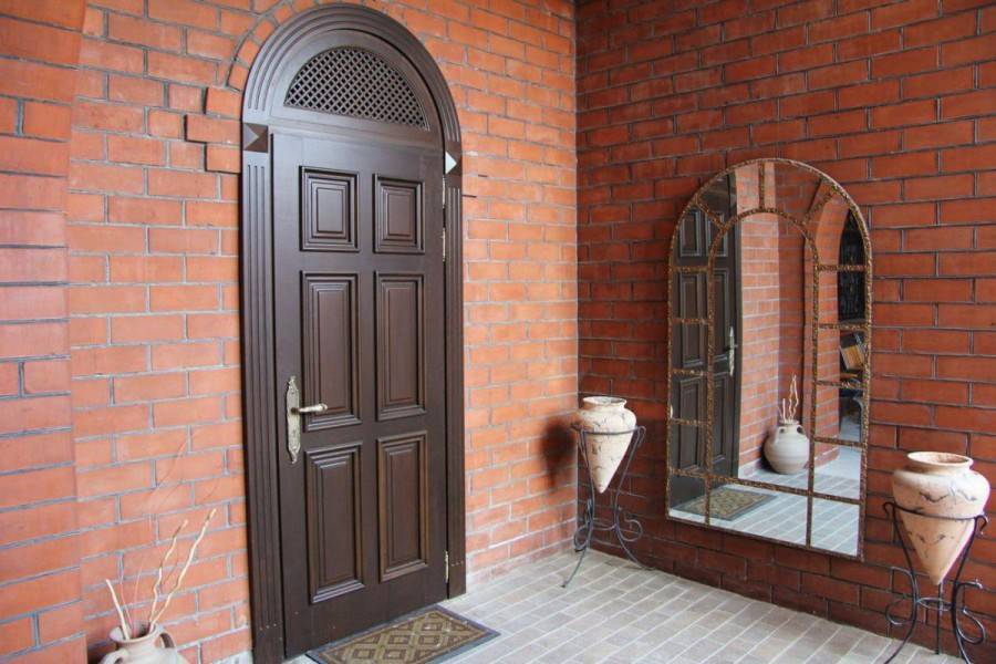 Деревянная входная дверь приобретается для частного дома с каркасом. Это снижает риск деформации во время работы.