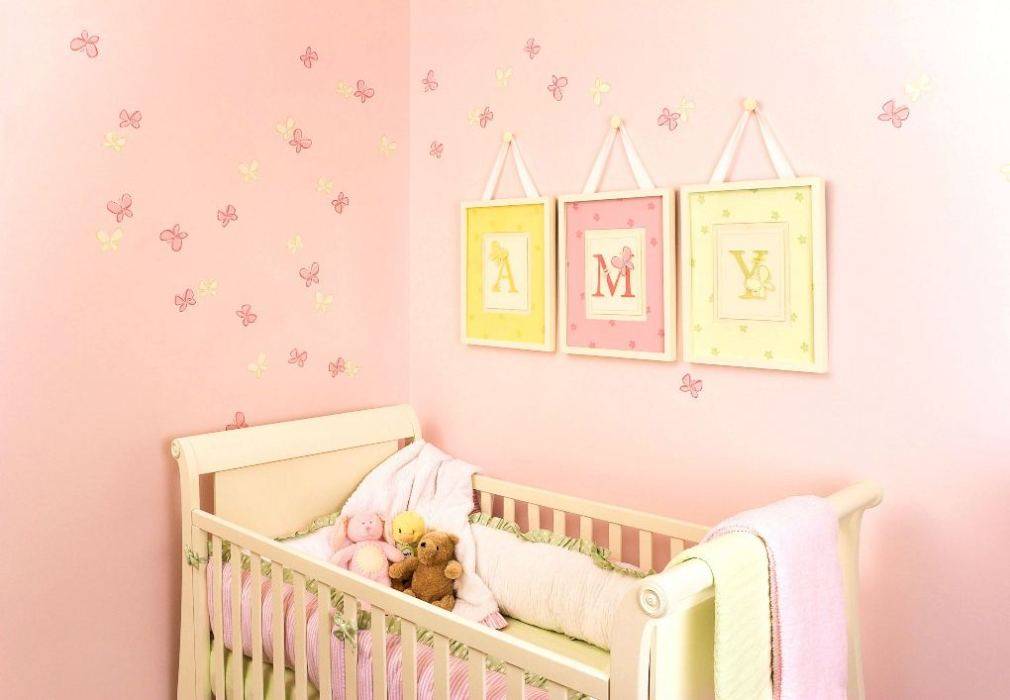 Интерьер комнаты девочки хорошо дополнят изображения бабочек, принцесс.
