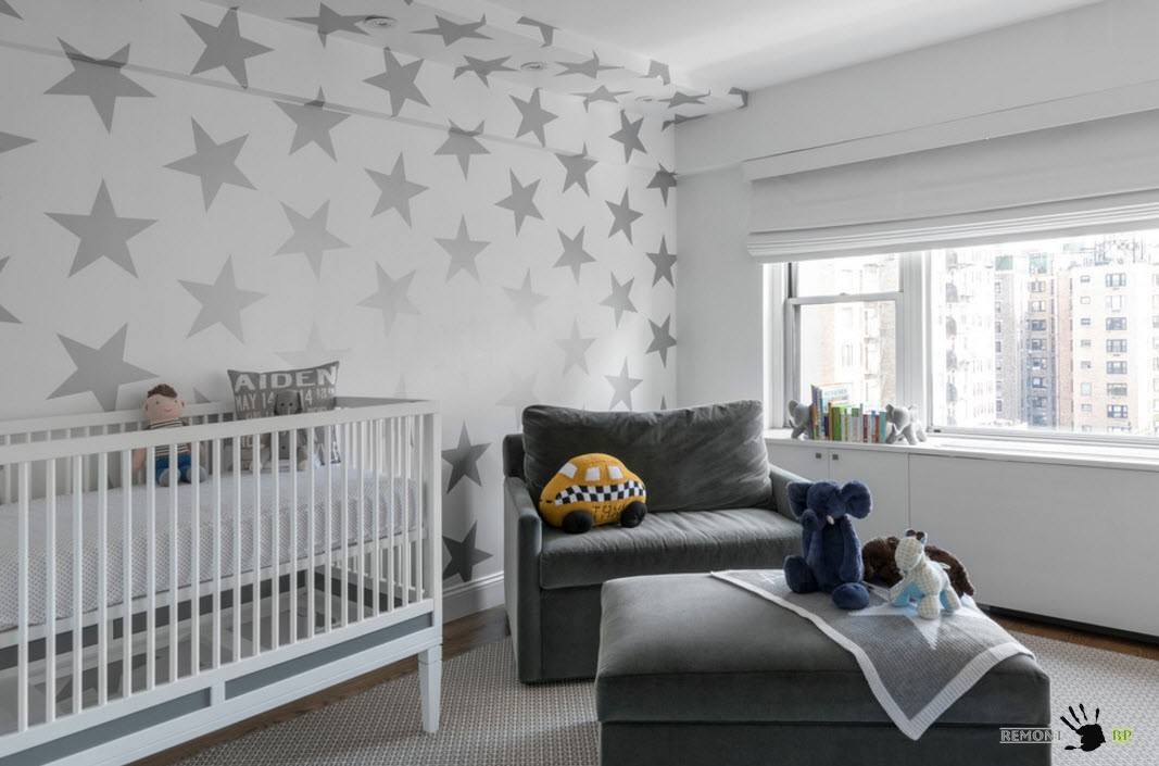 Дизайн комнаты для новорожденного зависит от пола малыша. Для мальчика — будущего мужчины, рекомендуется выбирать цвета которые отражают стойкость, уравновешенность и настойчивость. К ним относятся калорийные оттенки серого цвета прекрасно дополненными предметами декора-игрушками. Тем не менее светлых оттенков должно быть больше чем темных.