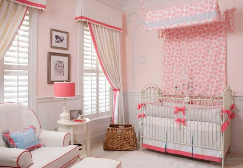 В дизайне комнаты крохотной новорожденной принцессы прекрасно подойдут цвета имеющие оттенки розового, бежевого, зеленного, кораллового, светло — сиреневого.