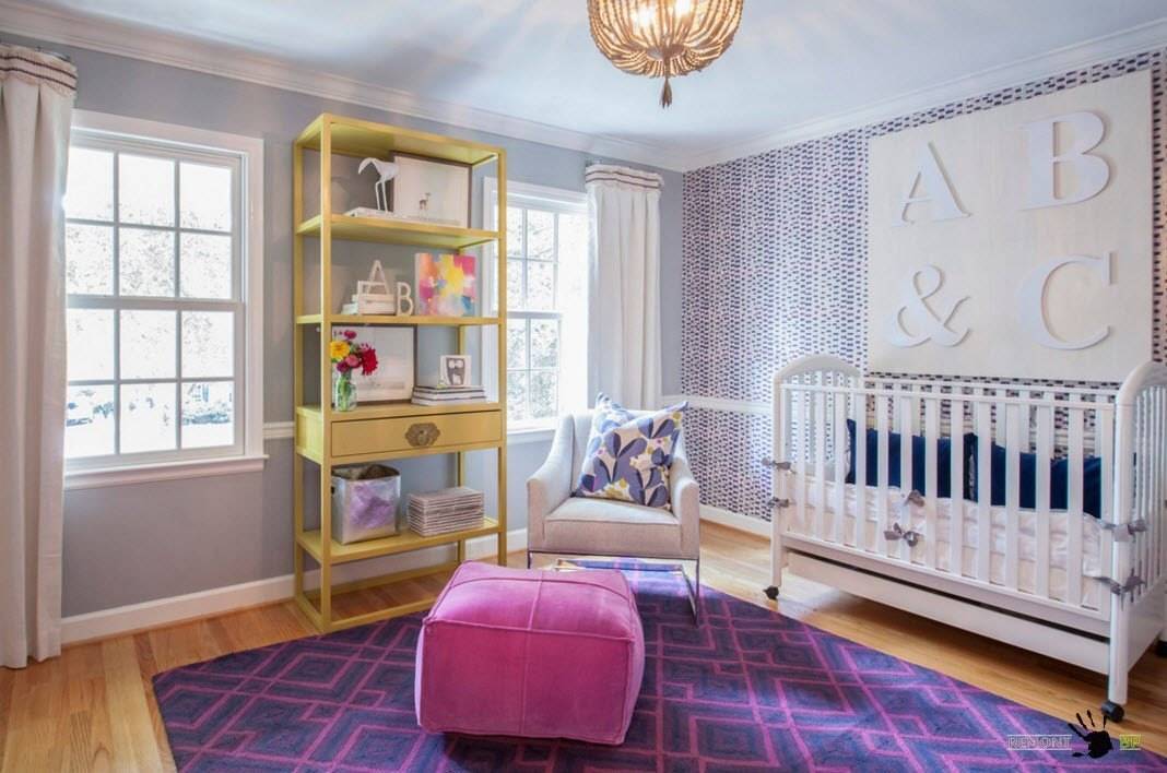 Еще большим очарованием наделит пространство разный текстиль. Колыбель дополняют ярким детским одеялом, а на пол стелют небольшой развивающий коврик. Стены в комнате новорожденного украшают большими буквами, формирующими имя малыша или памятными фотографиями.