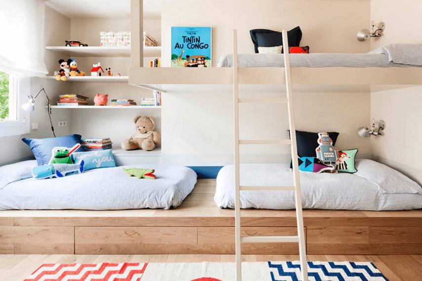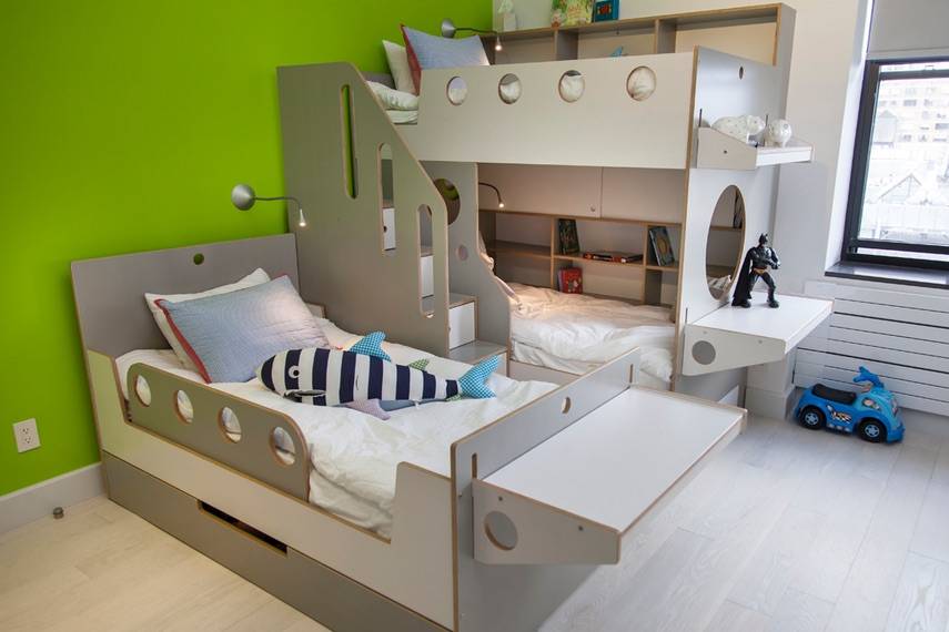 Практичность во всем – обязательное условие дизайна детской для троих детей