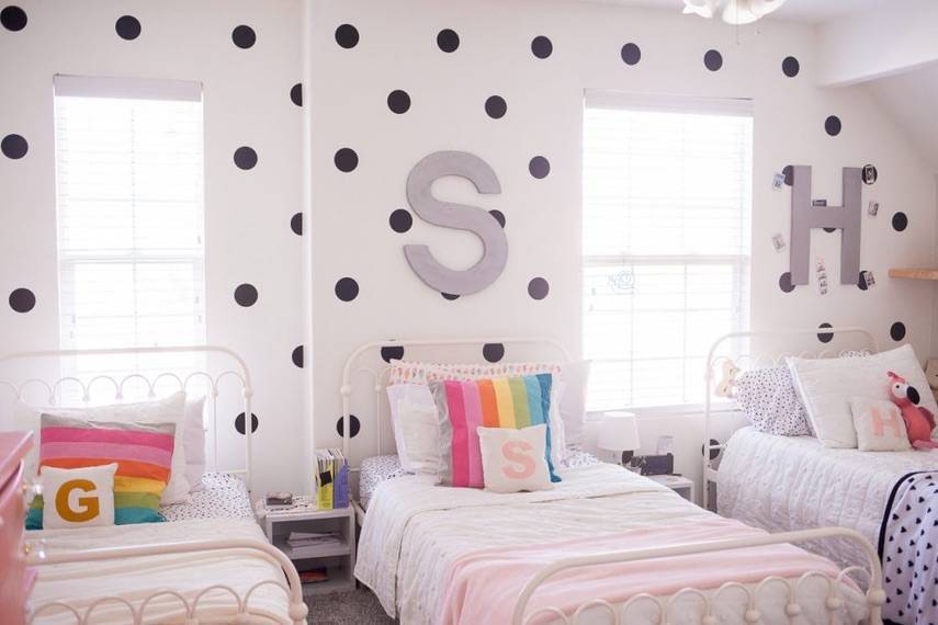 Выбирая дизайн комнаты для троих детей, ориентируйтесь на простоту, практичность и порядок. Декора пусть будет по минимуму. Это касается не только различных «красивостей». Из помещения должны быть убраны источники пыли (ковер с длинным ворсом, большое количество мягких игрушек). Для детских сокровищ сделайте исключение, пусть они и дальше хранятся в своих сундучках и коробках.