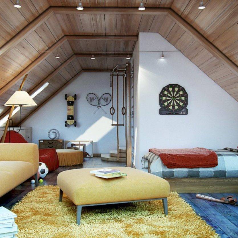 - сна и отдыха, кровати можно разместить под скошенной крышей.