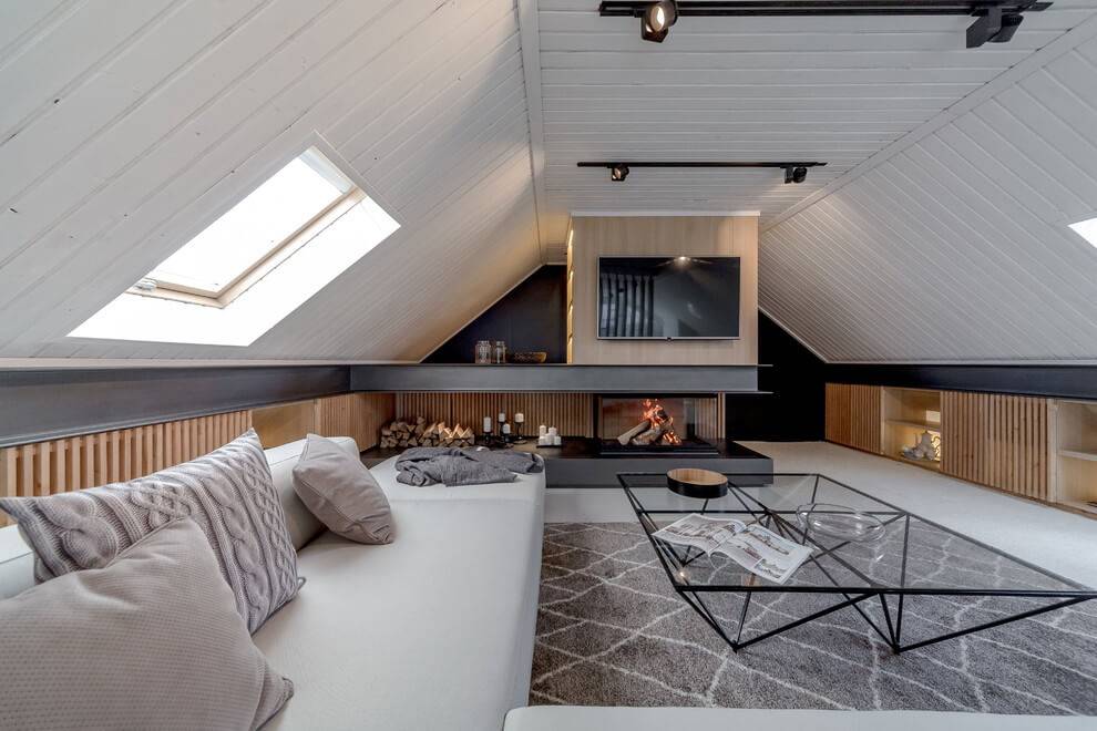 Чердачное пространство будет идеально смотреться в небольшой, уютный гостиной. Световые люки будут заливать комнату лучиками солнца. Да, часто это комнаты с ограниченным пространством, но если умело спроектировать, то будут вполне функциональными и гостеприимными. Небольшие зоны отдыха предлагают места, где люди могут немного расслабиться.