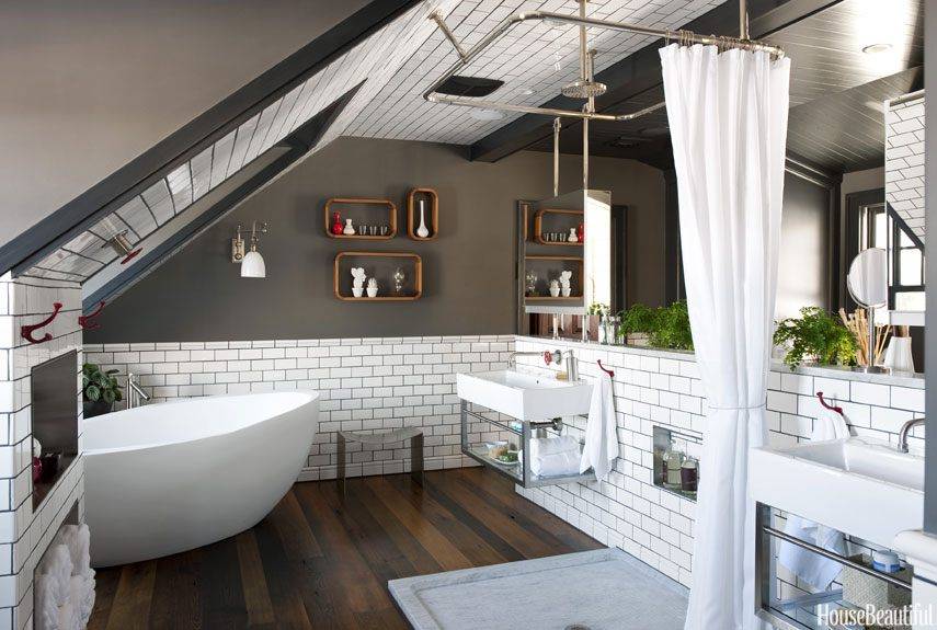 Ванную комнату на мансарде можно сделать в следующих стилях: