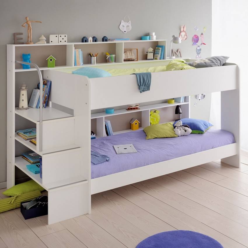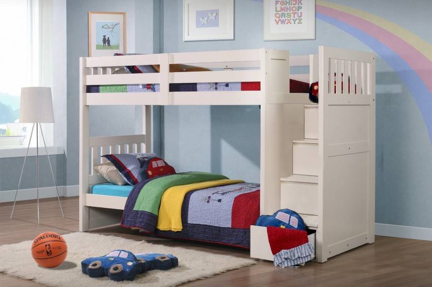 Но все же возраст, с которого малыша спокойно можно укладывать на ночь на второй «этаж» кровати, очень индивидуален. Оставлять одного наверху его стоит лишь в том случае, если он не боится высоты, спит спокойно и не вертится во сне. Не лишними будут и пристяжные ремни.