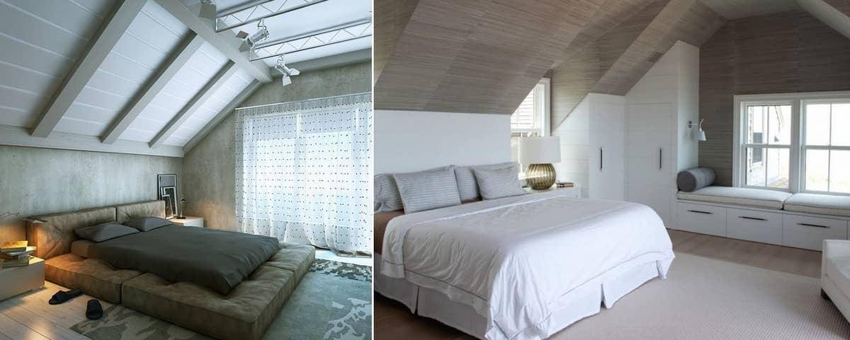Правильное сочетание стиля спальни с дополнительными аксессуарами способно преобразить помещение даже со скошенной крышей и превратить его в любимое место отдыха.