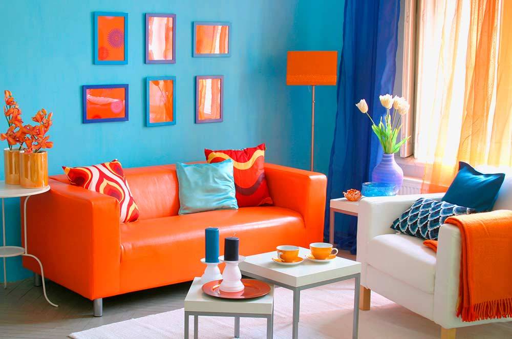 Оранжевый диван – решение молодых современных людей, которые идут в ногу со временем и общественным мнением. Такой вариант отлично смотрится в помещениях с синими, зелеными, голубыми стенами. Он подходит для поп-арт стиля. Разбавить помещение в таком случае можно различным точечным освещением.