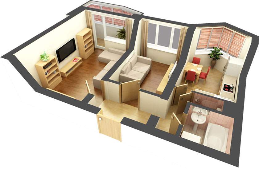 Одна из них – выбор мебели для квартиры. Для малогабаритной квартиры подходит мебель меньших размеров. Хорошо экономят пространство раскладные диваны-кровати, раздвижные столы, складные стулья. На схеме расстановки такие предметы мебели занимают меньше места.