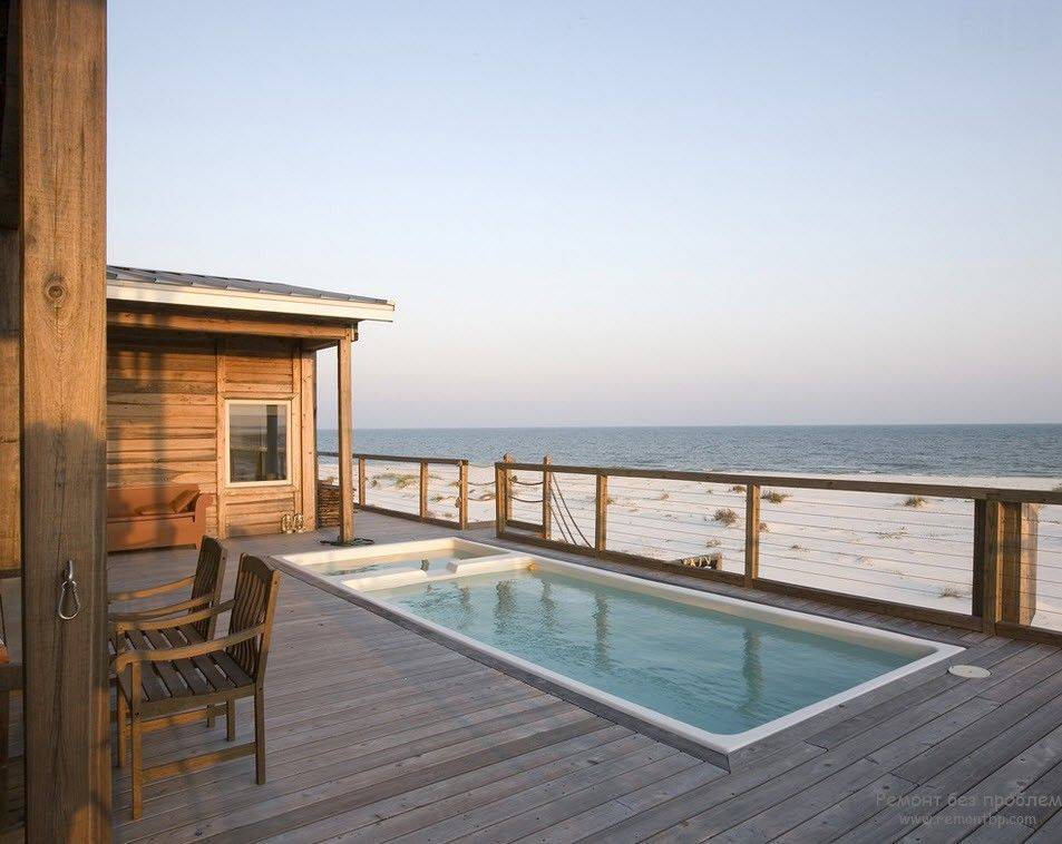 Белый бассейн кому-то, возможно, и нравится, но вода в нем выглядит визуально холоднее — то есть белый бассейн не столь «гостеприимен», как голубой. Кроме того, на белых поверхностях хорошо видны любые загрязнения, а это может еще больше оттолкнуть. Одним словом, белый бассейн — не самое удачное решение.