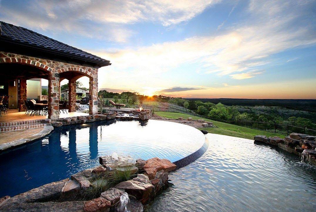 Его габариты полностью зависят от наличия свободного места на участке, также, можно самостоятельно выбирать форму чаши, задавать необходимую глубину. А дизайн такого бассейна и вовсе может быть самым разным: от классических вариантов с фонтанами до современных хай-тековых идей с переливными системами и строгими линиями.