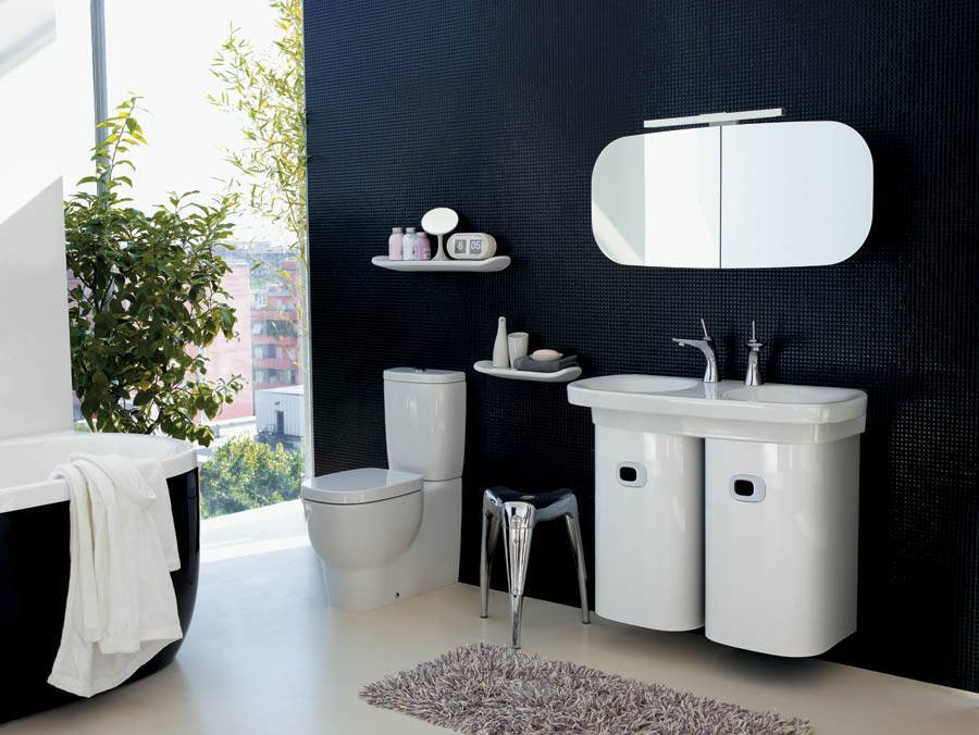 - Лучше всего остановить свой выбор на меблировке и декоре контрастных цветов. Например, белая ванная с чёрной мебелью смотрится очень стильно.