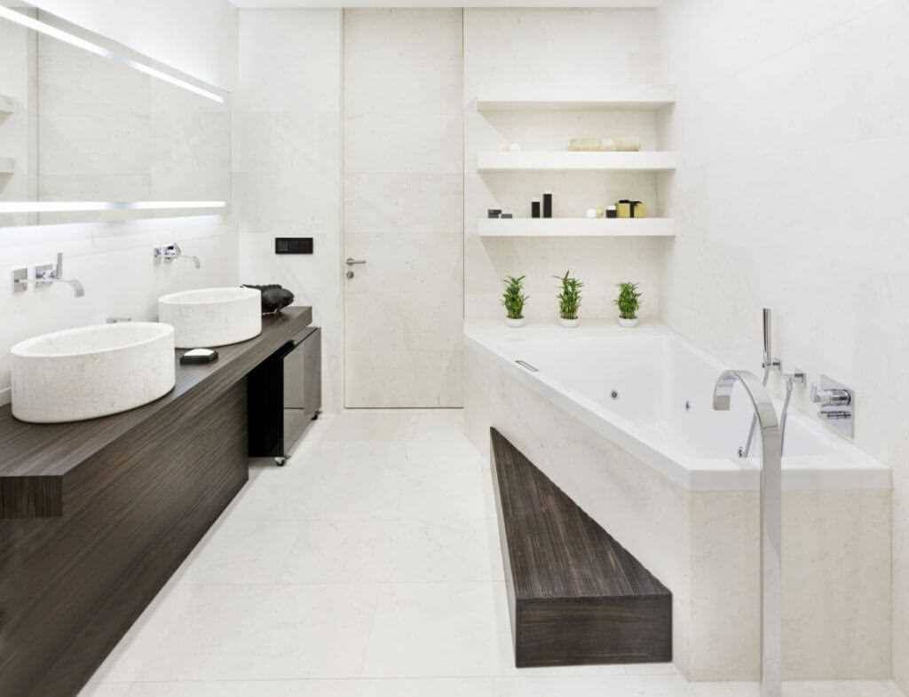 Практически каждый дизайнер и архитектор скажет вам, что светлые тона визуально расширяют любое пространство, даже малогабаритное. Помимо этого, комната получается очень светлой. Если вдобавок комната обложена глянцевой плиткой, которая отражает свет, владельцу будет достаточно лишь пары светильников.
