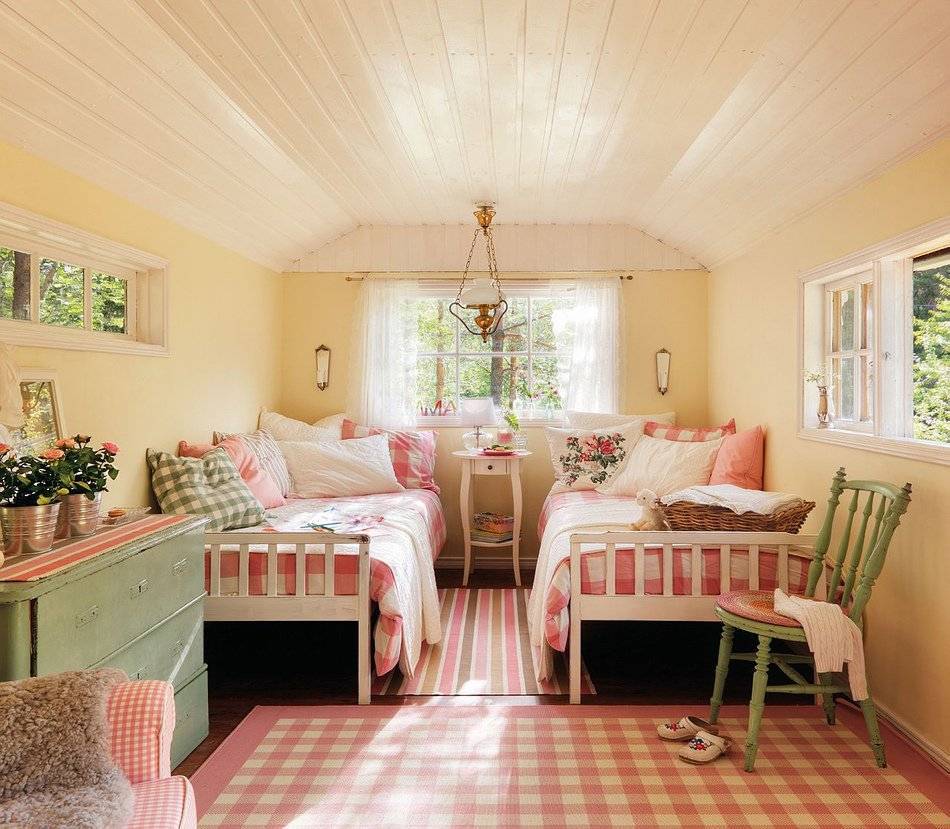 Интересно смотрятся кровать и полочки, оформленные в виде домиков. Спальня, оформленная в , станет для двух девочек территорией для развития и настоящей дружбы.