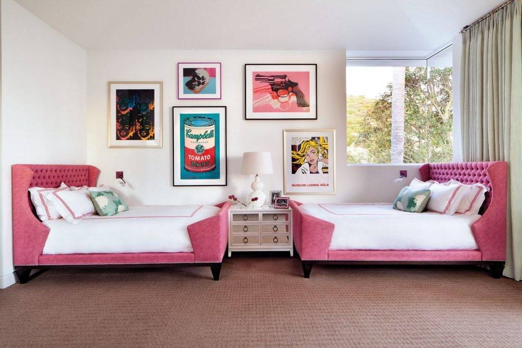Дизайн детской для двух активных девочек может быть реализован в стилистике поп-арт. Неординарный стиль поможет создать яркое пространство, в котором точно не будет скучно двум девочкам. «Искусство, доступное всем» — именно так можно интерпретировать название направления. К его особенностям относятся: