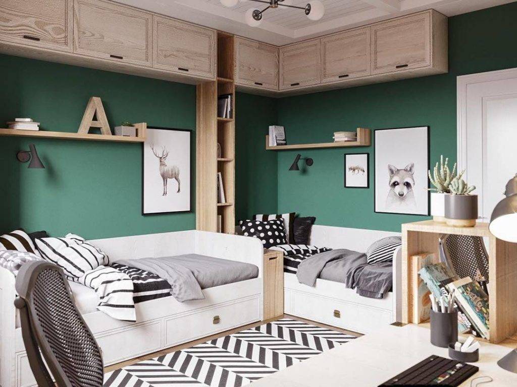 в спальной зоне каждого ребёнка не должны присутствовать посторонние предметы, как и в учебном уголке. Чёткое соблюдение такого правила позволяет разграничить пространство, а каждой области комнаты иметь определённое назначение. При этом стоит учитывать возраст детей. Если один ребёнок достаточно взрослый, а второй — младшего возраста, то игрушки, электронная техника и другие предметы будут мешать и создавать дискомфорт