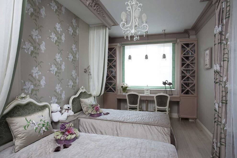 Классика напоминает нам о прошлом и в то же время она всегда актуальна. Стиль предполагает роскошный декор, что наверняка оценят маленькие хозяйки комнаты. Бархат, позолота, лепнина, зеркала – обстановка создаст ощущение, что две маленькие девочки оказались в королевском дворце.