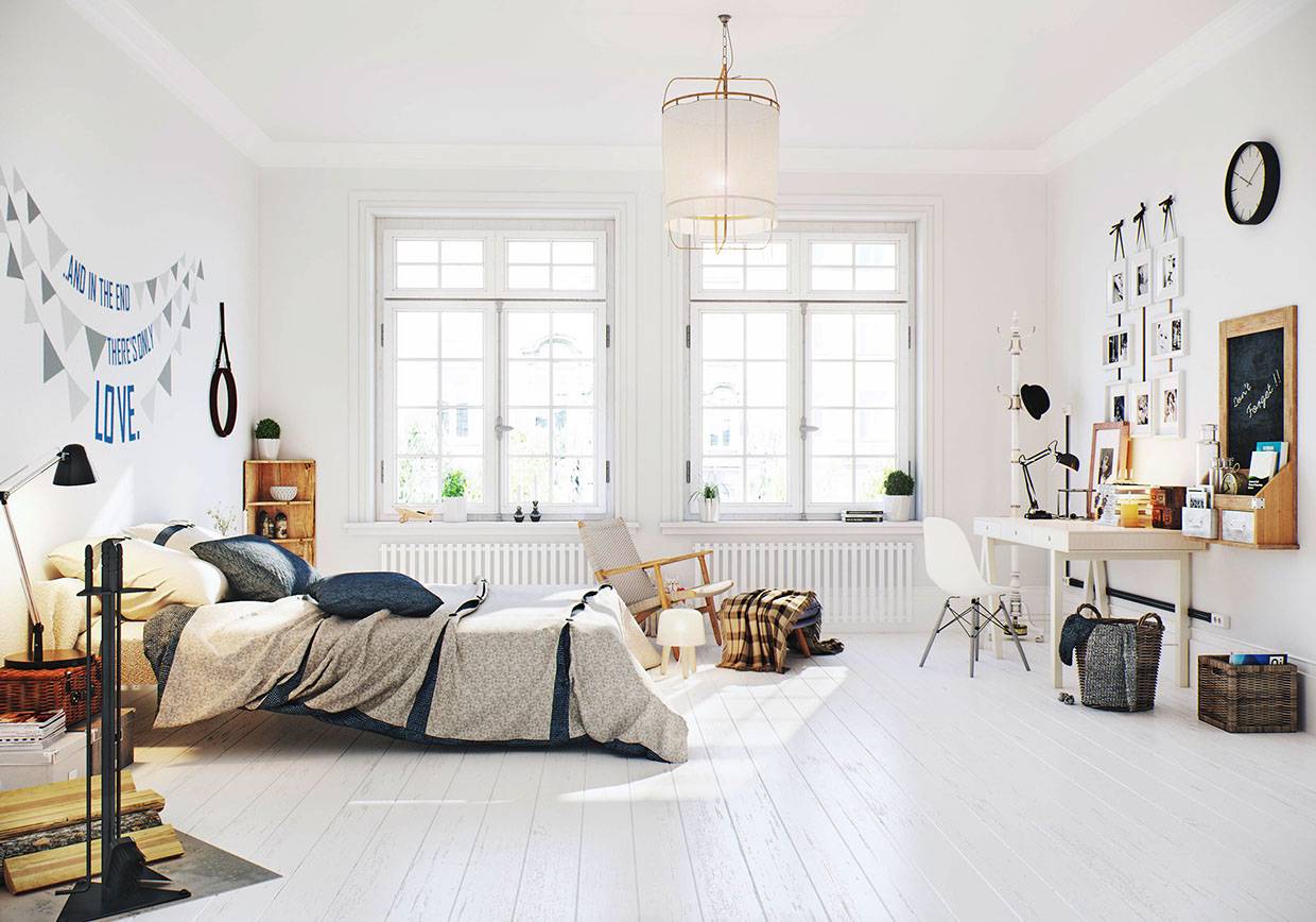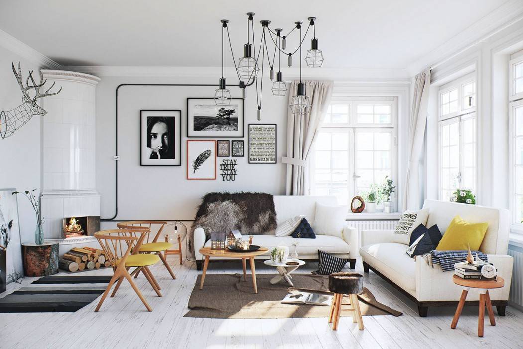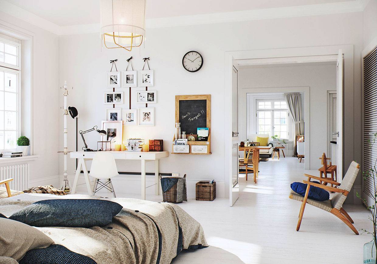 Выбор цветовой гаммы может быть самым разным. Многое зависит от выбранного вами стилевого решения. Например, для скандинавского стиля единая цветовая палитра для всего жилья – это принципиальный вопрос. Как правило, основа скандинавского стиля – это оттенки белого: для потолка, стен и даже пола. Фон готов. Теперь осталось расставить яркие акценты. В скандинавском интерьере может быть до 5 оттенков. Виды акцентов: разноцветный коврик, декоративные подушки или мебель темного цвета.