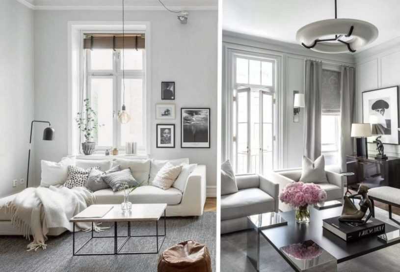 Минимализм: оформление интерьера светлой гостиной в современном стиле обычно имеет минималистичные черты – максимальная функциональность при минимуме объектов. Этот стиль ратует за отсутствие лишних предметов, в том числе украшений, оставляв комнате много свободного пространства и воздуха;