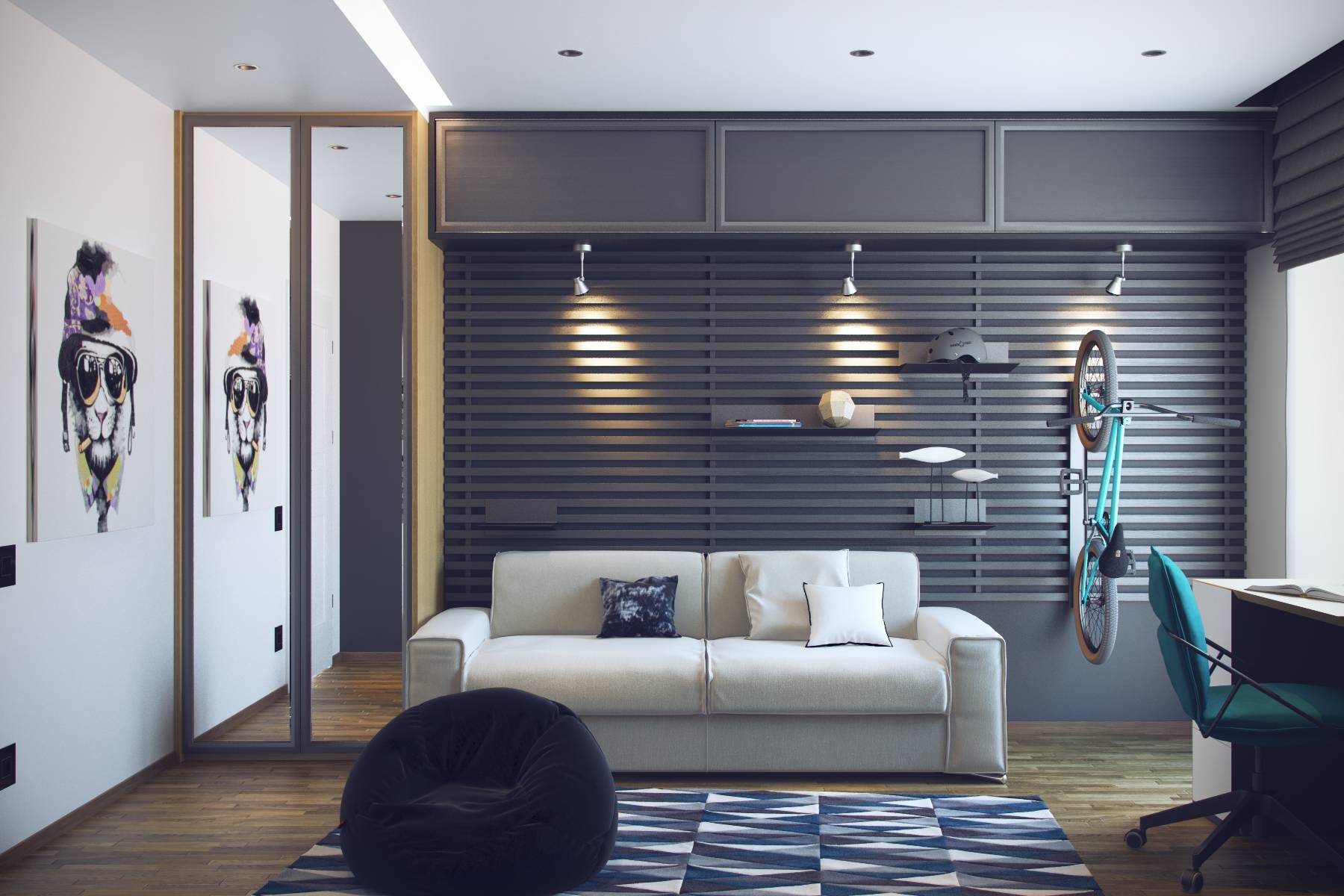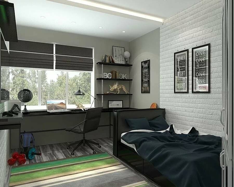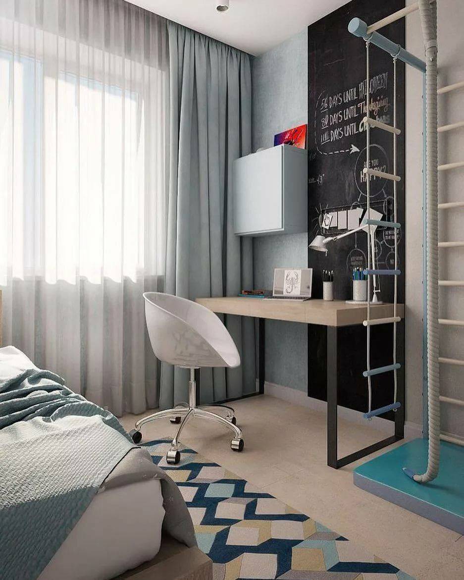 Если парень увлекается музыкой, то в его комнате должны присутствовать музыкальные инструменты и по возможности импровизированная сцена, где он сможете заниматься. Для спортсмена будет уместен спортивный уголок, боксерские перчатки на стене и боксерская груша для тренировок. Определившись с основной фишкой дизайна можно без труда подобрать будущий стиль даже для оформления комнаты подростка 9-12 кв м.