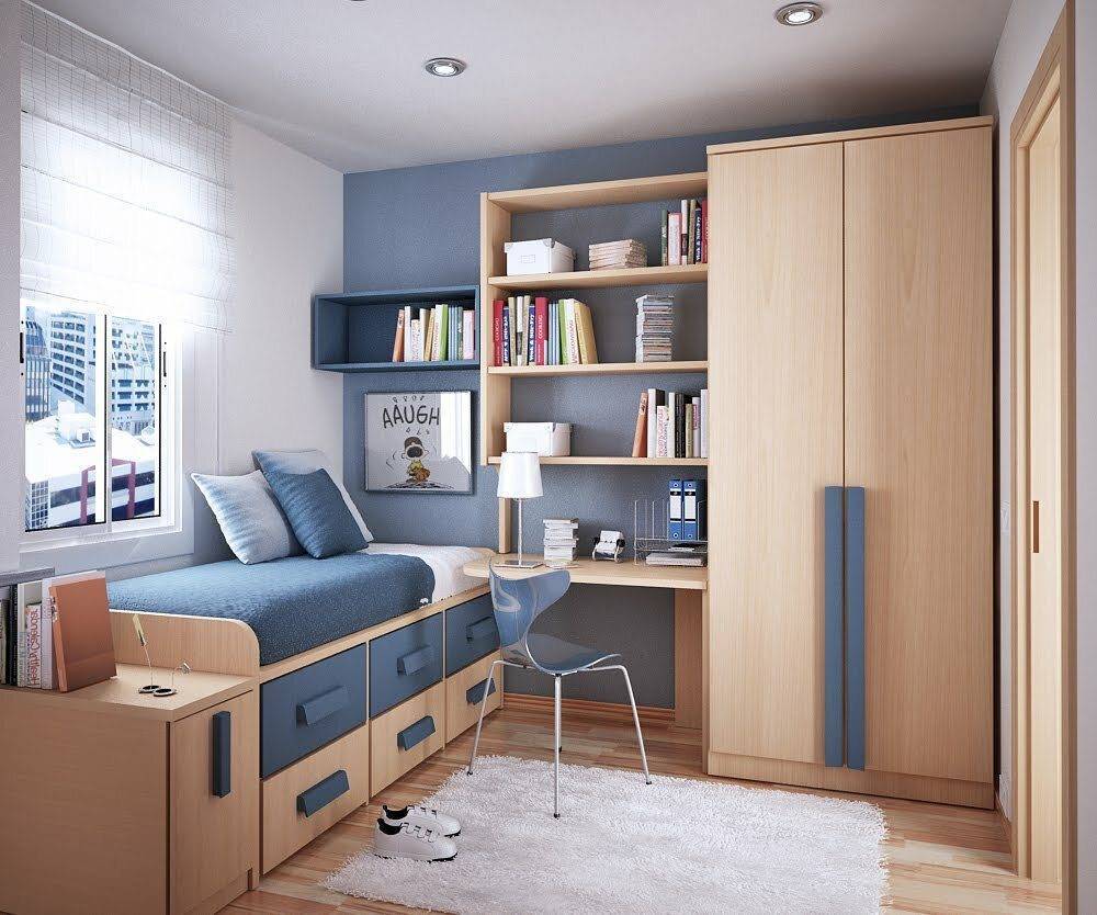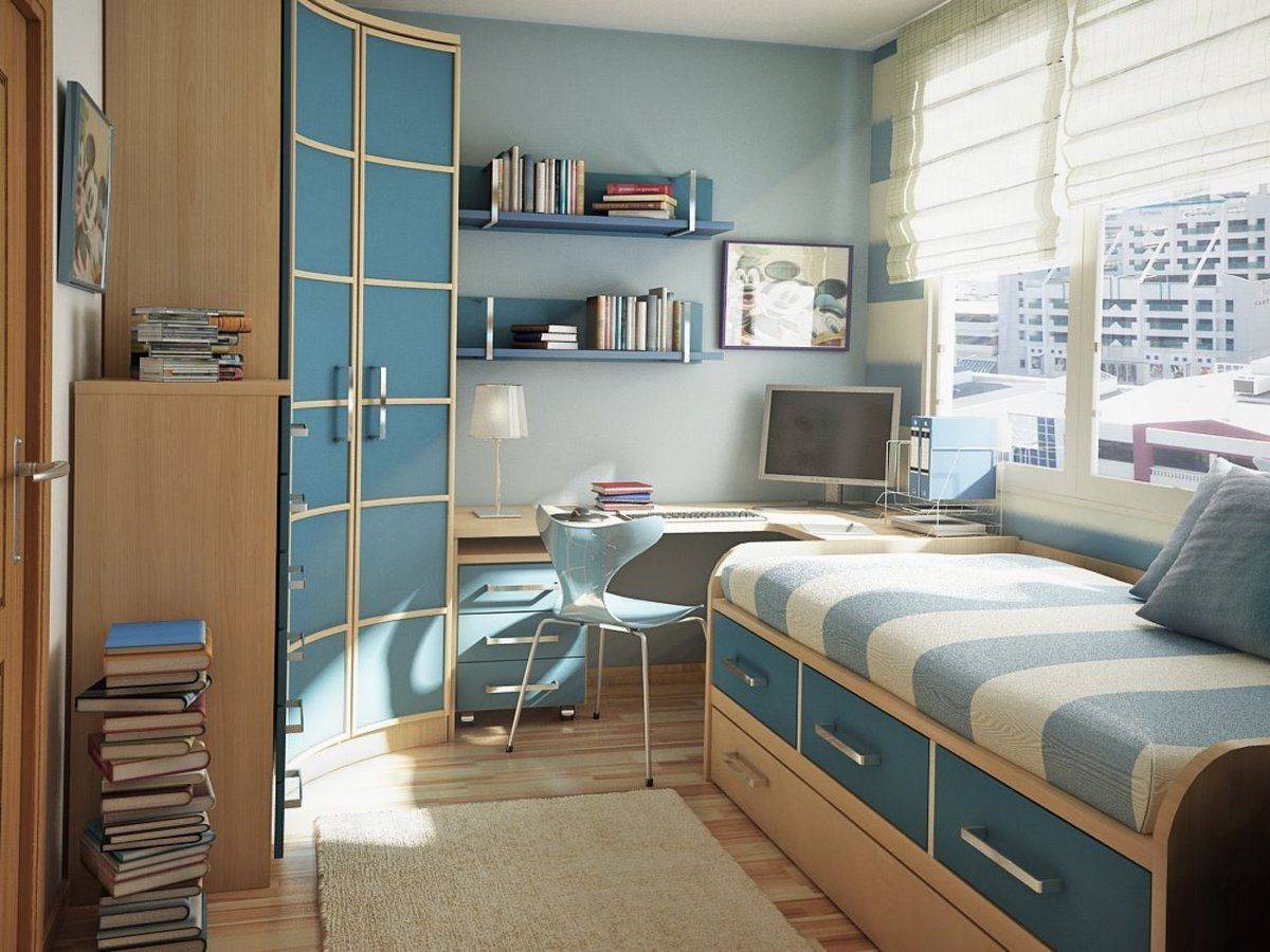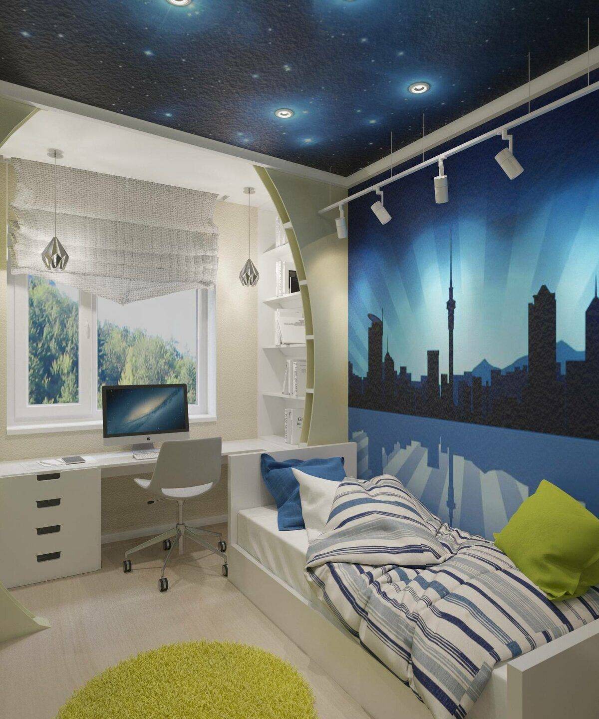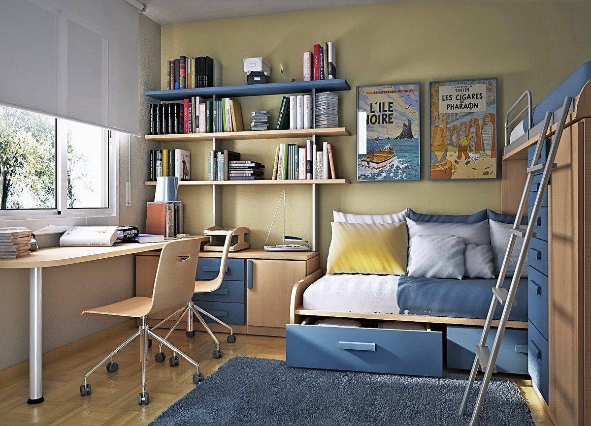 При разработке интерьер маленькой комнаты для подростка, не следует забывать и о безопасности, особом внимании к устойчивости предметов меблировки, отсутствию острых углов и т. д