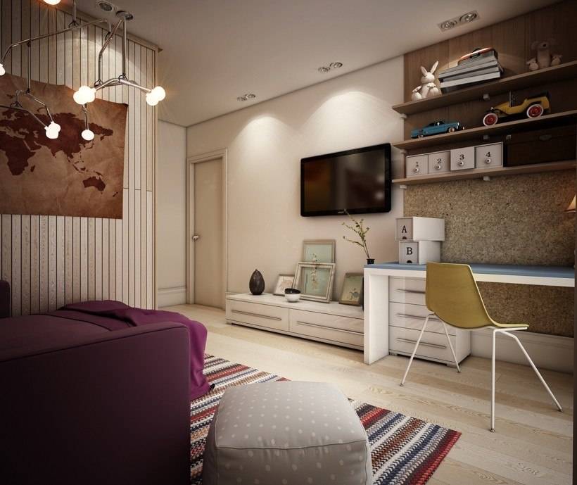 - В зоне отдыха, помимо кресел, телевизора, игровой приставки, нужна тумба или комод для вещей.