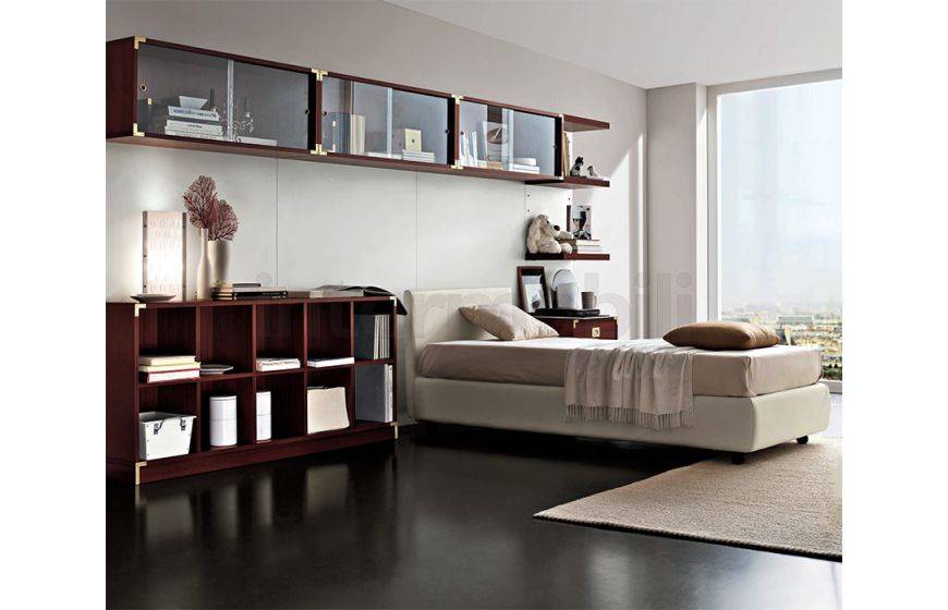 Если комната небольшая, то лучше сделать выбор в пользу комбинированного шкафа. Такой модуль имеет как открытые, так и закрытые секции. Он сочетает функции книжного и платяного шкафов.