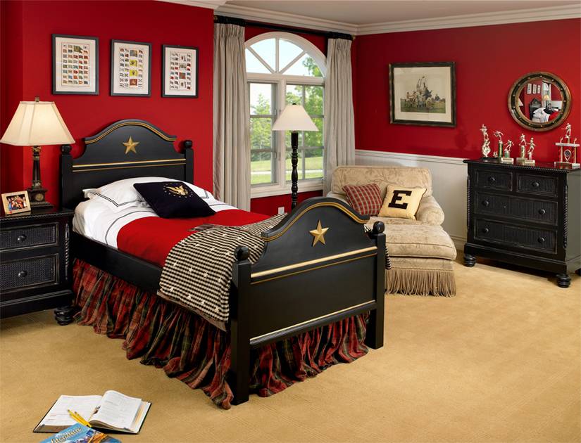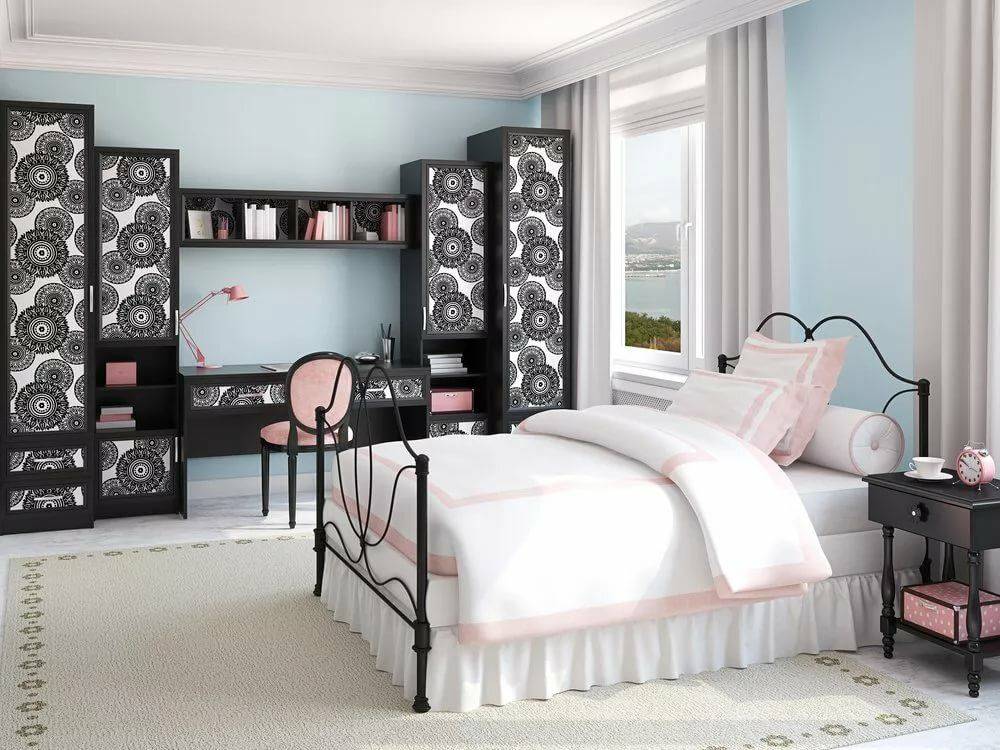 Все зависит от личных предпочтений ребенка. Даже если вы не согласны с его выбором, постарайтесь не навязывать свое мнение, а слегка подкорректировать оттенок, немного приглушить его или осветлить. Так же расскажите подростку, как влияет цвет на его настроение. В зеленой рабочей зоне быстрее учатся уроки, а спится лучше среди желтого, синего и зеленого. Общаться хорошо в уголке с яркими рисунками или наклейками. Если он все же настаивает на абсолютно черной комнате, покажите ему фото подобных интерьеров и предложите компромисс – черный потолок. Не переживайте особо из-за цвета стен или невозможности найти какие-то особые обои. Все равно подростковый возраст – это время обклеивать все вертикальные поверхности постерами, афишами и фотографиями.