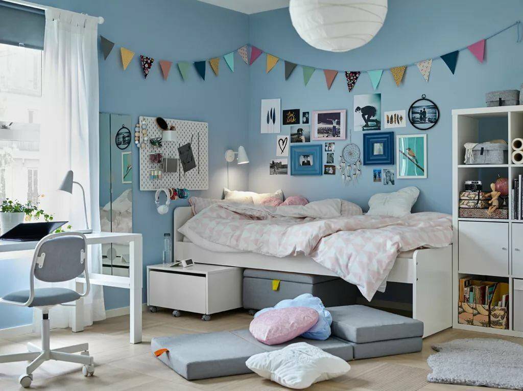 В спальне подросток спит, учится, занимается любимыми делами, хранит вещи. Для каждой задачи требуется собственный предмет мебели: