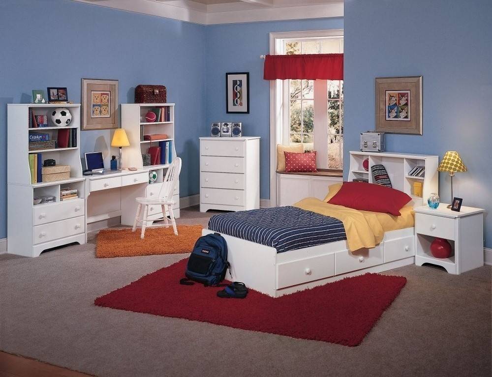 Стиль Драйв – такому стилю будут рады молодые люди, ведь он олицетворяет страсть к машинам и езде. Главные компоненты мебели: шкаф купе с белыми фасадами и рисунком гоночной машины, а также высокие и низкие стеллажи под книги. Кровать выполняется в серо-белом оформлении, она низкая и не имеет спинок. На всех поверхностях могут быть изображены машины в красном оттенке. Дополняет интерьер музыкальная система, расположенная на стеллаже;
