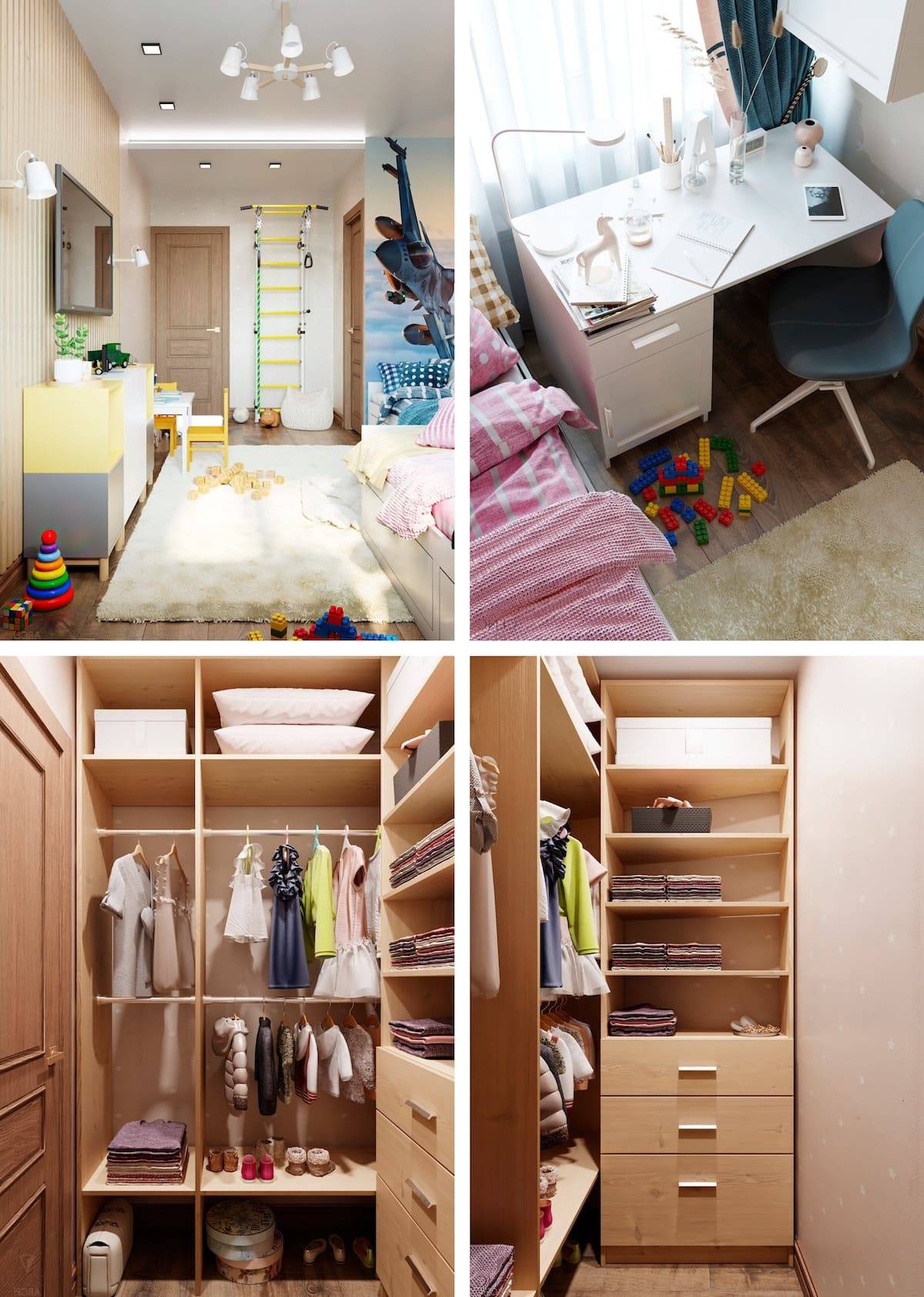 В детской для двоих нужно вдвое больше места для хранения вещей. Тут нужны: