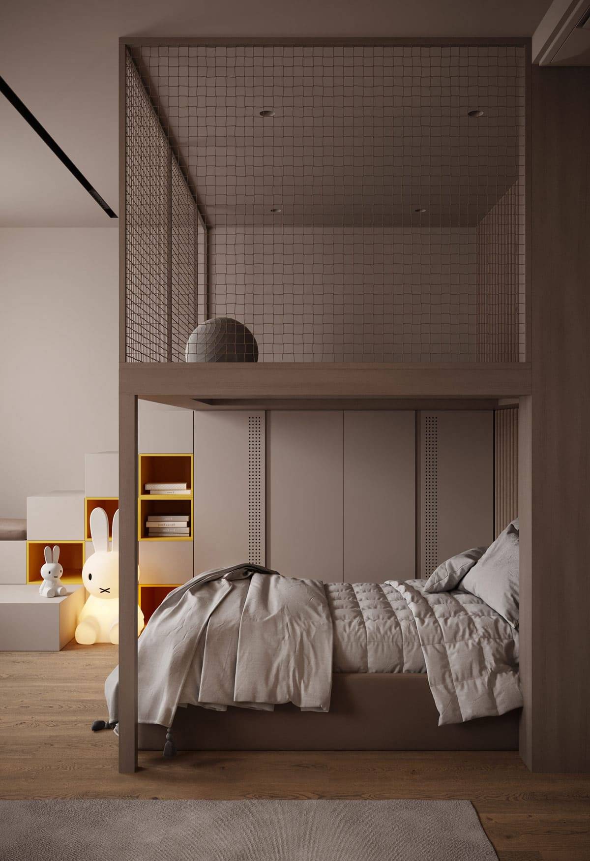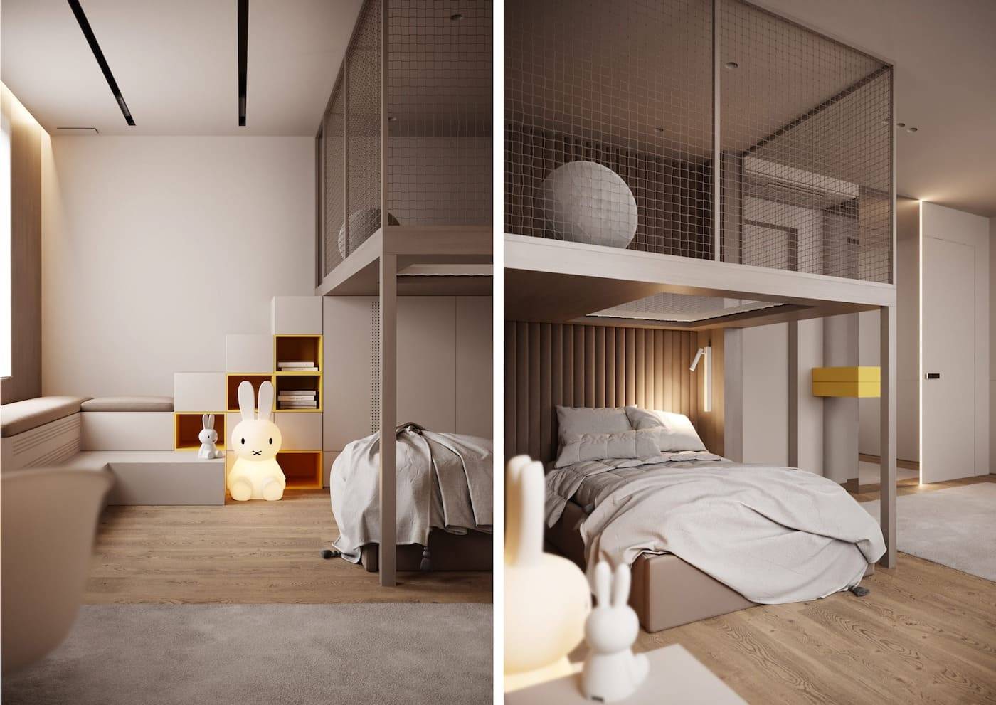 – Двухъярусные системы с кроватью на втором этаже. Чаще такой прием используется в детской. Но и подросток оценит современное технологичное решение.