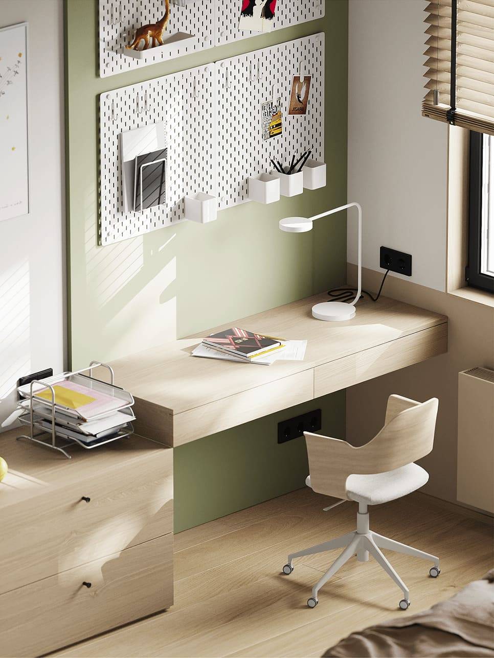 Планировать маленькую комнату всегда сложнее, особенно для активных подростков с массой интересов и увлечений. Поэтому используй все возможные приемы, чтобы визуально увеличить пространство: