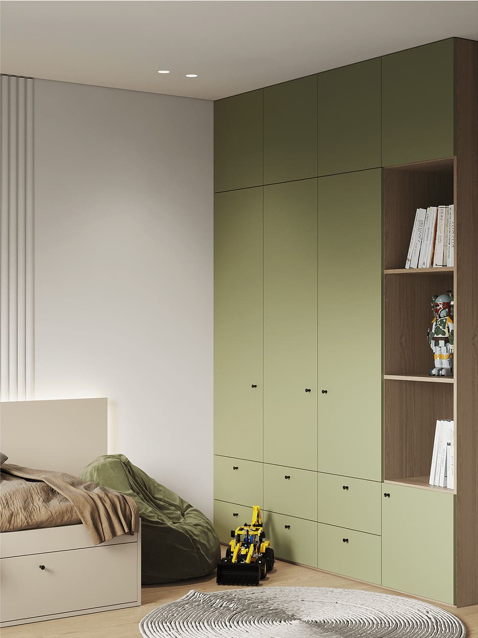 – Многофункциональные встроенные системы хранения. Большое количество ниш, ящиков, коробок и отделений поможет подростку удобно разложить все свои богатства и коллекции;
