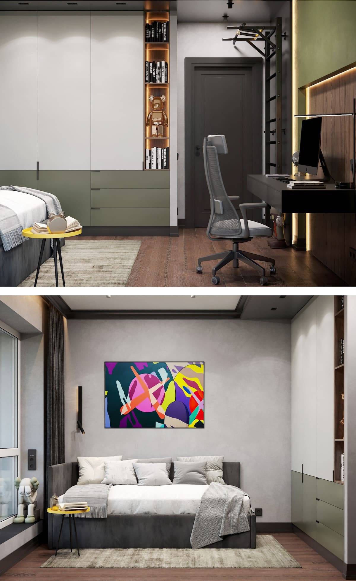 Сочетание этих факторов осчастливит ребенка и упростит его жизнь. Подросткам будет нестыдно привести друзей и провести с ними время дома. А хорошо проработанное рабочее место облегчит изучение школьных предметов.